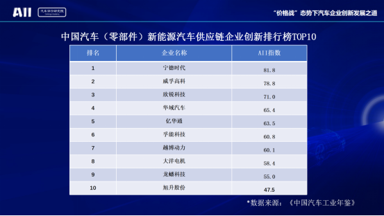 中國汽車(零部件)新能源汽車供應鏈企業(yè)創(chuàng)新排行榜TOP10