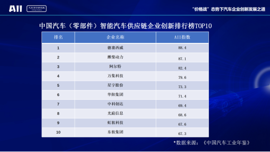 中國汽車(零部件)智能汽車供應鏈企業(yè)創(chuàng)新排行榜TOP10