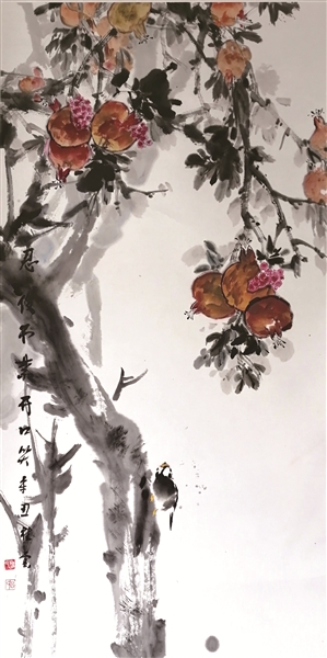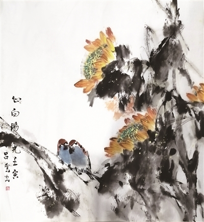 呂桂云十分懂得營造單純畫面的現(xiàn)代形式美感。其花鳥畫中的形式因素,無論是鳥、花卉或他物,皆以有利于營造整體的形式關(guān)系為度,絕不妄添多余之物。呂桂云涉筆不取陳格,不落俗格,其獨標(biāo)異格,既有新穎的現(xiàn)代氣息,又有濃郁的古雅意趣。