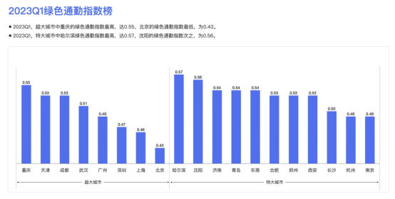 百度地圖聯(lián)合清華大學(xué)數(shù)據(jù)科學(xué)研究院交通大數(shù)據(jù)研究中心、北京交通發(fā)展研究院等發(fā)布的《2023年第一季度中國城市交通報(bào)告》(以下簡(jiǎn)稱《報(bào)告》)顯示,今年一季度,全國主要城市交通出行活力復(fù)蘇,百城中近八成城市通勤高峰交通擁堵指數(shù)較2022年同期有所上升;周末游熱度明顯,前十名城市有八個(gè)為一線和新一線城市;通勤幸福感方面,近八成城市的1小時(shí)通勤指數(shù)超過90%,5公里通勤指數(shù)榜TOP10城市廣東入圍8城;重慶和哈爾濱分別是超大及特大城市綠色通勤指數(shù)榜第一。
