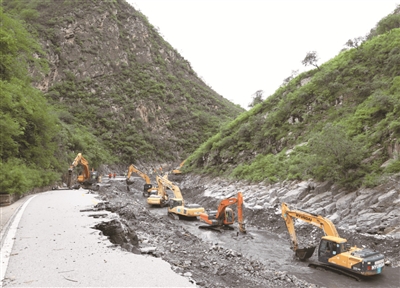 8月5日16時(shí),隨著北京建工機(jī)施集團(tuán)副總經(jīng)理劉海龍趕到史家營鄉(xiāng)政府向鄉(xiāng)長(zhǎng)匯報(bào)搶險(xiǎn)結(jié)果,標(biāo)志著經(jīng)過30小時(shí)鏖戰(zhàn),北京建工機(jī)施集團(tuán)全面打通了賈金路賈峪口至史家營鄉(xiāng)18公里交通生命線。