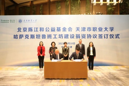 5月10日,北京陳江和公益基金會支持天津市職業(yè)大學魯班工坊簽約儀式在天津舉行。該捐贈主要用于資助即將在中亞國家哈薩克斯坦開展的、“一帶一路”相關(guān)項目——魯班工坊的建設。