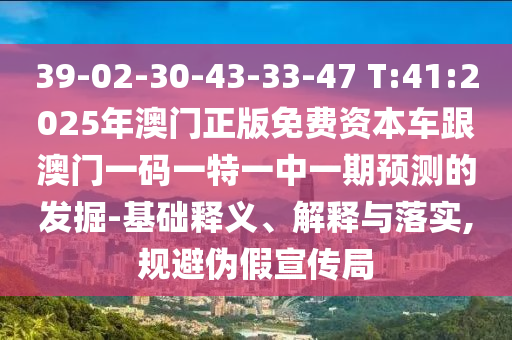 39-02-30-43-33-47 T:41:2025年澳門正版免費(fèi)資本車跟澳門一碼一特一中一期預(yù)測的發(fā)掘-基礎(chǔ)釋義、解釋與落實(shí),規(guī)避偽假宣傳局