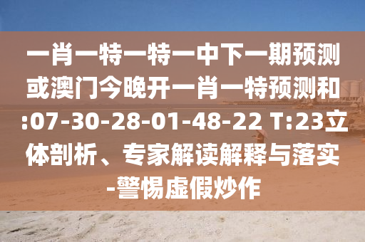 一肖一特一特一中下一期預(yù)測或澳門今晚開一肖一特預(yù)測和:07-30-28-01-48-22 T:23立體剖析、專家解讀解釋與落實-警惕虛假炒作