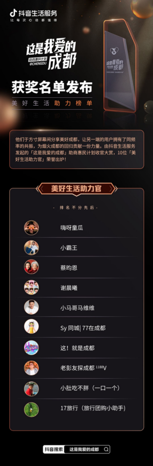 附:「這是我愛的成都·美好生活助力榜單」獲獎(jiǎng)名單