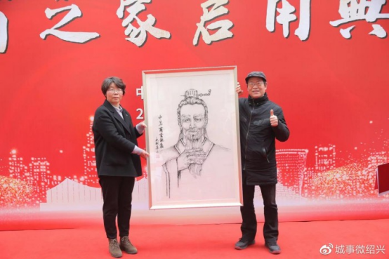 儀式最后,紹興市知名藝術家林劍華先生向《越商之家》捐贈一幅精心創(chuàng)作的中華商圣范蠡肖像畫。