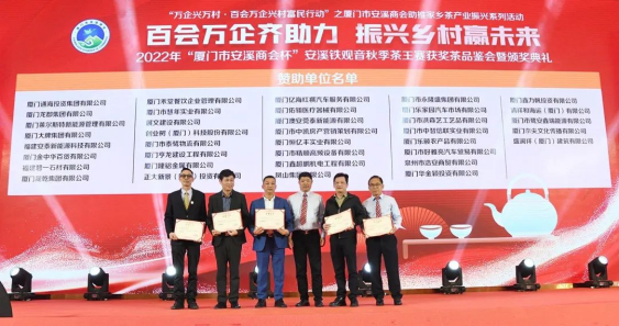在當晚舉行的茶王賽頒獎典禮上,廈門市安溪商會為各位獲獎?wù)哳C獎,為大賽的協(xié)辦和贊助企業(yè)頒發(fā)牌匾和證書。廈門市安溪商會為茶王賽設(shè)置獎金高達百萬元,大賽的舉辦,得到商會數(shù)十家會員企業(yè)的鼎力支持。
