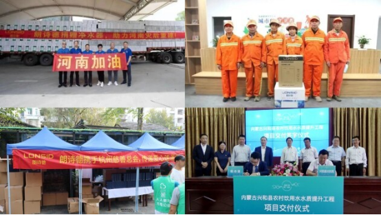 除了高考助力以外,朗詩德凈水器也曾積極參與過許多其他公益活動(dòng)。2019年,朗詩德凈水器積極助力內(nèi)蒙凈水扶貧,憑借對(duì)復(fù)雜水質(zhì)的多年研究,為三千多戶水質(zhì)不達(dá)標(biāo)的農(nóng)村人家,安裝上朗詩德L2凈水器,惠及農(nóng)戶上萬人;2020年,朗詩德為湖南省城步縣捐贈(zèng)防疫物質(zhì);2021年7月,朗詩德公司在河南省發(fā)生特大暴雨后,幫助河南災(zāi)后重建,捐贈(zèng)價(jià)值上千萬的朗詩德凈水器,助力河南災(zāi)后重建;同年9月,朗詩德凈水器通過莆田慈善總會(huì)、杭州慈善總會(huì)捐贈(zèng)千盒愛心月餅,向醫(yī)護(hù)人員和一線勞動(dòng)者送上這份獨(dú)屬于中秋的溫暖;2022年,朗詩德給北白象鎮(zhèn)勞動(dòng)者環(huán)衛(wèi)驛站的工人們送去了一臺(tái)L3純水機(jī)以及GA406K-2管線機(jī),有效解決了環(huán)衛(wèi)工人“喝水難”的問題,讓環(huán)衛(wèi)工人感受到社會(huì)的關(guān)愛和城市的溫暖。