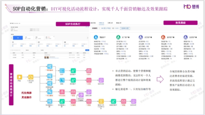 例如,基于慧博云千載MA(營(yíng)銷(xiāo)畫(huà)布),通過(guò)DIY可視化活動(dòng)流程設(shè)計(jì),實(shí)現(xiàn)千人千面營(yíng)銷(xiāo)觸達(dá)及效果跟蹤。