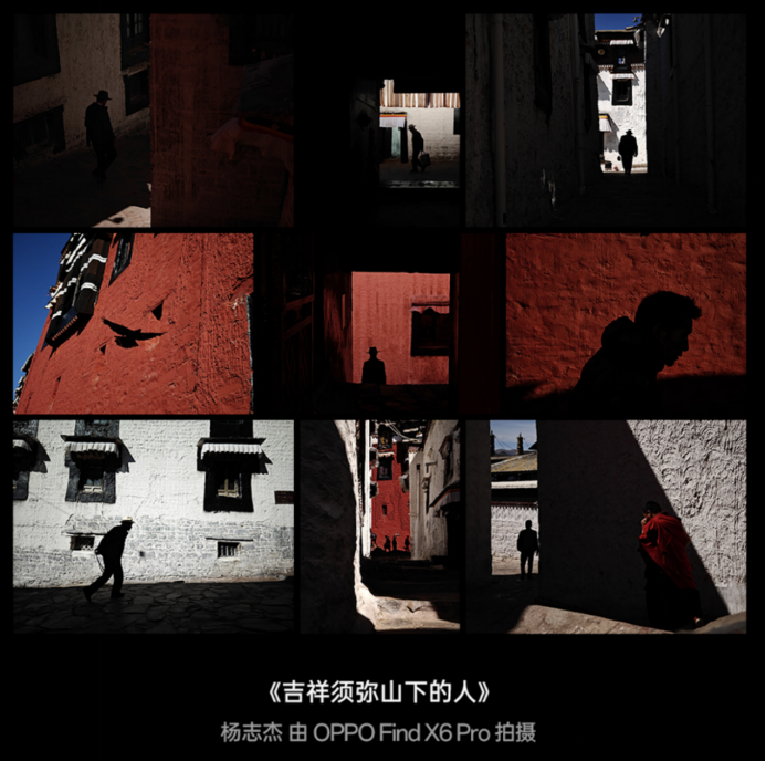 其中楊志杰用OPPO Find X6 Pro 拍攝的《吉祥須彌山下的人》 更是體現(xiàn)出了超光影潛望長焦的強悍表現(xiàn) ,畢竟IMX890大底傳感器作為長焦鏡頭,更多的進光亮讓明暗遠近的拍攝更簡單,最主要的是通過變焦可以在不同的距離下取景,留給攝影師的構(gòu)圖空間更大,可以拍出更多種可能。靈活控制手機影像曝光,以及抓拍到動態(tài)微妙的剪影,呈現(xiàn)出強烈的在光影對比。