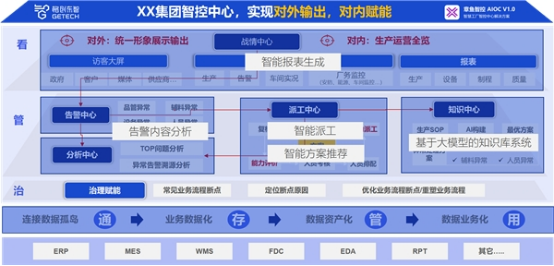 比如,格創(chuàng)東智為某頭部半導(dǎo)體工廠推出的智慧工廠一體化智控中心解決方案(1+4+1),以生產(chǎn)執(zhí)行和公司運營為基準(zhǔn),通過建立1個數(shù)據(jù)平臺、4個中心(戰(zhàn)情中心、告警中心、派工中心、分析中心)、1個知識庫,打造高效率、高可靠的智能集控中心,利用OctopusGPT實現(xiàn)了戰(zhàn)情中心報表自動生成、告警內(nèi)容分析、智能派工管理閉環(huán)、基于行業(yè)大模型的知識庫等智能化功能,使工廠營運管理過程更加智能高效,為企業(yè)帶來持續(xù)的價值和競爭優(yōu)勢。