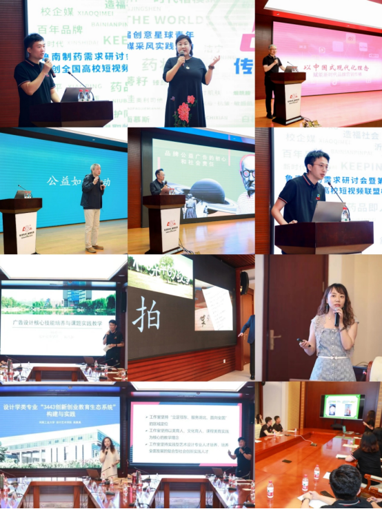 現(xiàn)場(chǎng),湖北師范大學(xué)蔣達(dá)老師、山東工藝美術(shù)學(xué)院創(chuàng)新創(chuàng)業(yè)學(xué)院鄭建鵬老師、河南工業(yè)大學(xué)高雅真老師、蘇州大學(xué)劉英杰老師分別從高校美育改革與教學(xué)實(shí)踐創(chuàng)新、廣告設(shè)計(jì)核心技能培養(yǎng)、導(dǎo)師工作室教學(xué)培養(yǎng)、短視頻制作指導(dǎo)攻略進(jìn)行主題分享。來(lái)自珠海科技學(xué)院黃鉦皓同學(xué),圍繞“追尋自我”主題分享自己短視頻創(chuàng)作的歷程。