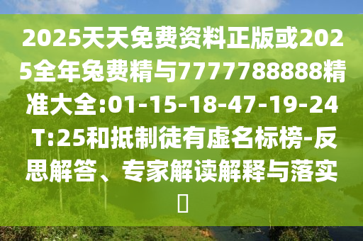2025天天免費(fèi)資料正版或2025全年兔費(fèi)精與7777788888精準(zhǔn)大全:01-15-18-47-19-24 T:25和抵制徒有虛名標(biāo)榜-反思解答、專家解讀解釋與落實(shí)?