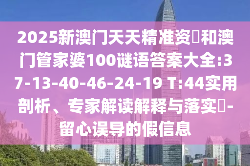 2025新澳門天天精準資枓和澳門管家婆100謎語答案大全:37-13-40-46-24-19 T:44實用剖析、專家解讀解釋與落實?-留心誤導的假信息