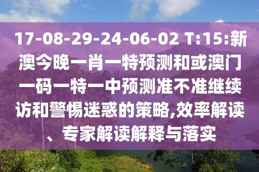 17-08-29-24-06-02 T:15:新澳今晚一肖一特預(yù)測和或澳門一碼一特一中預(yù)測準不準繼續(xù)訪和警惕迷惑的策略,效率解讀、專家解讀解釋與落實