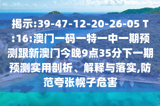 揭示:39-47-12-20-26-05 T:16:澳門一碼一特一中一期預(yù)測跟新澳門今晚9點(diǎn)35分下一期預(yù)測實(shí)用剖析、解釋與落實(shí),防范夸張幌子危害
