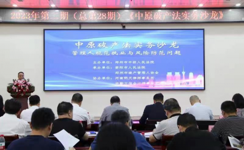 為進一步提高破產(chǎn)審判專業(yè)化水平,優(yōu)化法治化營商環(huán)境,以破產(chǎn)審判服務(wù)保障經(jīng)濟高質(zhì)量發(fā)展。6月3日下午,由鄭州市中級人民法院主辦,滎陽市人民法院、鄭州市破產(chǎn)管理人協(xié)會承辦的2023年度第二期中原破產(chǎn)法實務(wù)沙龍在滎陽市人民法院舉辦。來自政府、法院、高校及從事破產(chǎn)實務(wù)、理論研究的省內(nèi)外專家、法官、管理人代表等110余人現(xiàn)場參加沙龍活動。該期沙龍由鄭州市中級人民法院清算與破產(chǎn)審判庭副庭長陳丕運主持。