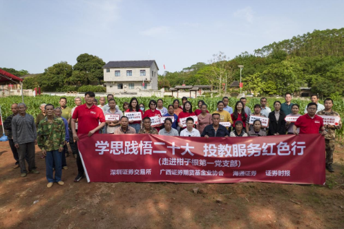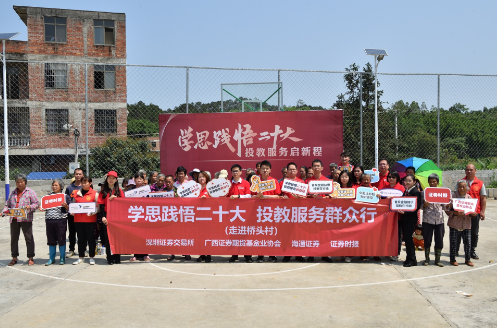 4月25日-26日,深交所聯(lián)合海通證券、廣西證券期貨基金業(yè)協(xié)會、證券時報舉辦的“學思踐悟二十大 投教服務啟新程”投資者服務專項活動走進廣西欽州市浦北縣。在深入開展學習新時代中國特色社會主義思想主題教育之際,以多載體、多角度、多形式走進鄉(xiāng)村小學、村間打谷場、田間地頭、紅色教育基地,以群眾喜聞樂見的方式展開面對面宣傳交流,推動投資者教育服務進一步走進鄉(xiāng)村基層,助力鄉(xiāng)村振興。