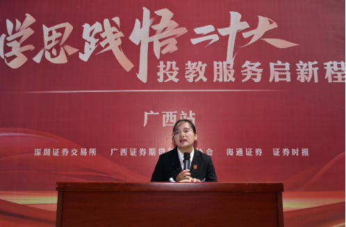 保護投資者合法權益,加強投資者教育是資本市場健康發(fā)展的基石。“學思踐悟二十大 投教服務啟新程”從基層投資者和廣大群眾的需求出發(fā),用群眾聽得懂的語言、喜聞樂見的方式,結合資本市場投資者服務工作實際,組織開展形式多樣的黨的二十大精神學習宣傳。今后,海通證券將堅持“切實保護中小投資者合法權益”的原則,在監(jiān)管部門的帶領下,聯(lián)合各市場主體,助力資本市場投資者服務工作再上臺階。