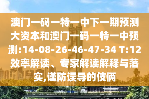澳門一碼一特一中下一期預(yù)測大資本和澳門一碼一特一中預(yù)測:14-08-26-46-47-34 T:12的效率解讀、專家解讀解釋與落實