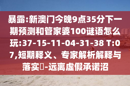 暴露:新澳門今晚9點35分下一期預(yù)測和管家婆100謎語怎么玩:37-15-11-04-31-38 T:07,短期釋義、專家解析解釋與落實?-遠(yuǎn)離虛假承諾沼