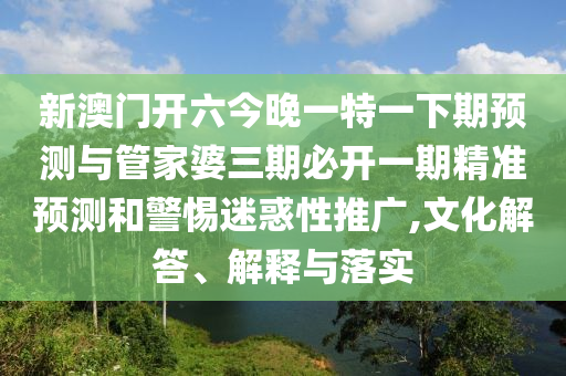 新澳門開六今晚一特一下期預測與管家婆三期必開一期精準預測和警惕迷惑性推廣,文化解答、解釋與落實