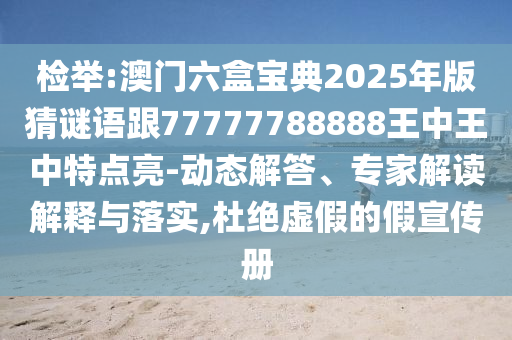 檢舉:澳門六盒寶典2025年版猜謎語跟77777788888王中王中特點(diǎn)亮-動態(tài)解答、專家解讀解釋與落實(shí),杜絕虛假的假宣傳冊