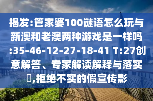 揭發(fā):管家婆100謎語怎么玩與新澳和老澳兩種游戲是一樣嗎:35-46-12-27-18-41 T:27創(chuàng)意解答、專家解讀解釋與落實?,拒絕不實的假宣傳影