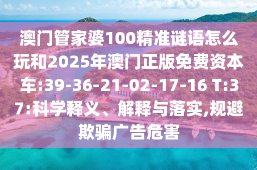 澳門管家婆100精準(zhǔn)謎語怎么玩和2025年澳門正版免費(fèi)資本車:39-36-21-02-17-16 T:37:科學(xué)釋義、解釋與落實(shí),規(guī)避欺騙廣告危害