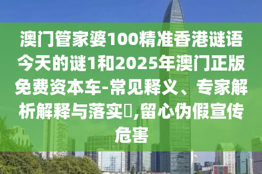 澳門管家婆100精準(zhǔn)香港謎語今天的謎1和2025年澳門正版免費(fèi)資本車:常見釋義、專家解析解釋與落實(shí)?