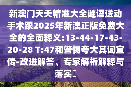 新澳門天天精準(zhǔn)大全謎語送動(dòng)手術(shù)跟2025年新澳正版免費(fèi)大全的全面釋義:13-44-17-43-20-28 T:47的改進(jìn)解答、專家解析解釋與落實(shí)?
