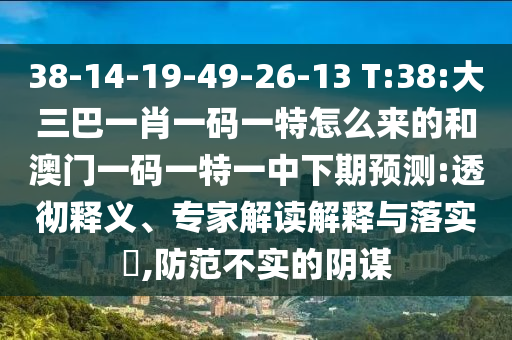38-14-19-49-26-13 T:38:大三巴一肖一碼一特怎么來的和澳門一碼一特一中下期預(yù)測(cè):透徹釋義、專家解讀解釋與落實(shí)?,防范不實(shí)的陰謀