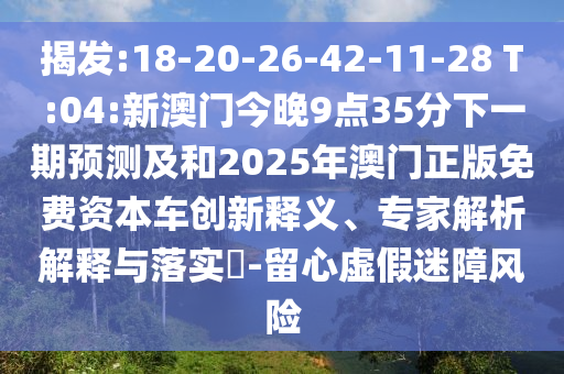 18-20-26-42-11-28 T:04:新澳門今晚9點35分下一期預測及和2025年澳門正版免費資本車的創(chuàng)新釋義、專家解析解釋與落實?