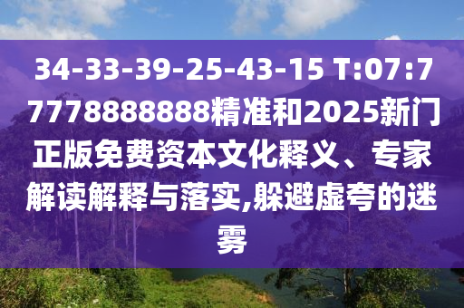 34-33-39-25-43-15 T:07:77778888888精準(zhǔn)和2025新門正版免費(fèi)資本文化釋義、專家解讀解釋與落實(shí),躲避虛夸的迷霧