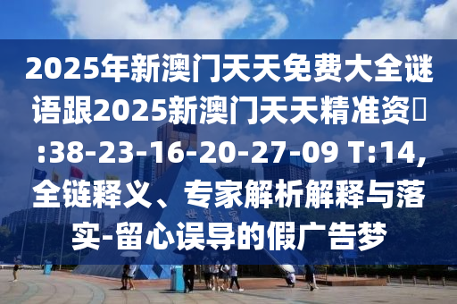 2025年新澳門天天免費大全謎語跟2025新澳門天天精準資枓:38-23-16-20-27-09 T:14,全鏈釋義、專家解析解釋與落實-留心誤導(dǎo)的假廣告夢