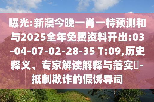 關(guān)于曝光“新澳今晚一肖一特預(yù)測”和“與2025全年免費(fèi)資料開出:03-04-07-02-28-35 T:09”的內(nèi)容,以及歷史釋義、專家解讀和抵制欺詐的假誘導(dǎo)詞等相關(guān)問題,本文將為您全面釋義、解釋與落實(shí)。