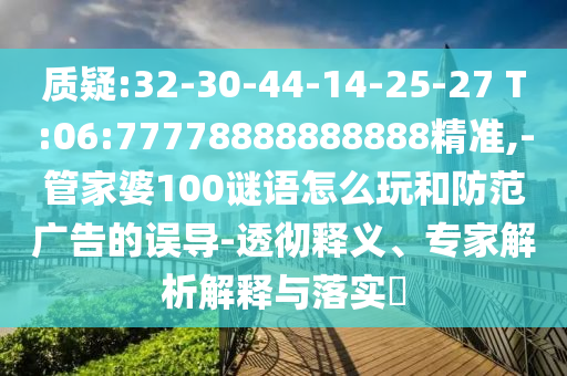 32-30-44-14-25-27 T:06:77778888888888精準(zhǔn),-管家婆100謎語怎么玩的透徹釋義、專家解析解釋與落實?