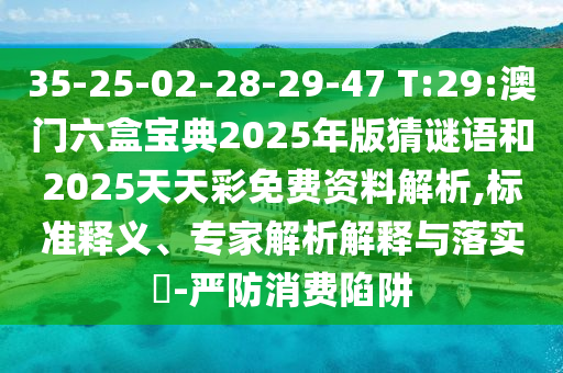 35-25-02-28-29-47 T:29:澳門六盒寶典2025年版猜謎語和2025天天彩免費資料解析的標(biāo)準(zhǔn)釋義、專家解析解釋與落實?