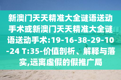 新澳門天天精準(zhǔn)大全謎語送動手術(shù)或新澳門天天精準(zhǔn)大全謎語送動手術(shù):19-16-38-29-10-24 T:35-價(jià)值剖析、解釋與落實(shí),遠(yuǎn)離虛假的假推廣局