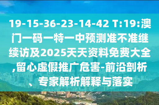 19-15-36-23-14-42 T:19:澳門一碼一特一中預測準不準繼續(xù)訪及2025天天資料免費大全,留心虛假推廣危害-前沿剖析、專家解析解釋與落實
