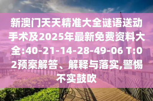 新澳門天天精準(zhǔn)大全謎語送動手術(shù)及2025年最新免費(fèi)資料大全:40-21-14-28-49-06 T:02預(yù)案解答、解釋與落實(shí),警惕不實(shí)鼓吹