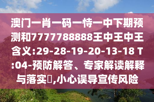澳門(mén)一肖一碼一恃一中下期預(yù)測(cè)和7777788888王中王中王含義:29-28-19-20-13-18 T:04-預(yù)防解答、專(zhuān)家解讀解釋與落實(shí)?,小心誤導(dǎo)宣傳風(fēng)險(xiǎn)