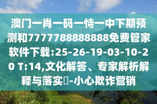 澳門一肖一碼一恃一中下期預(yù)測(cè)和7777788888888免費(fèi)管家軟件下載:25-26-19-03-10-20 T:14,文化解答、專家解析解釋與落實(shí)?-小心欺詐營(yíng)銷