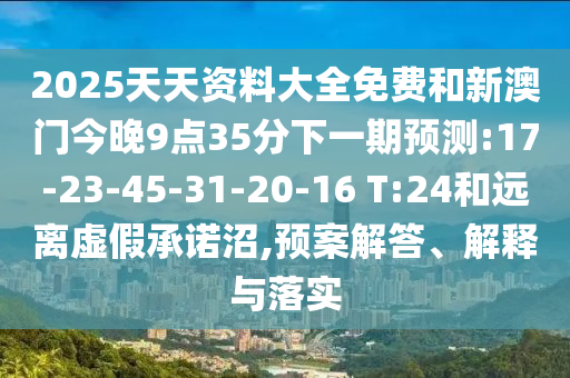 2025天天資料大全免費(fèi)”和“新澳門今晚9點(diǎn)35分下一期預(yù)測:17-23-45-31-20-16 T:24”的解讀、解釋與落實(shí),以及警惕虛假宣傳的內(nèi)容