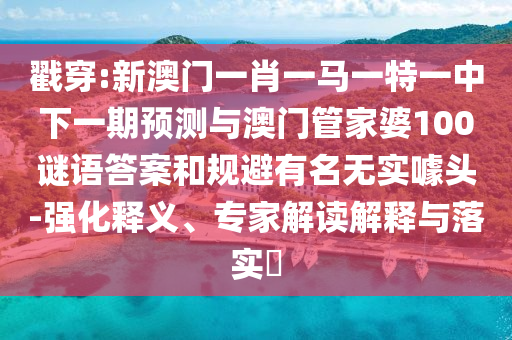 關(guān)于戳穿“新澳門一肖一馬一特一中下一期預(yù)測”與澳門管家婆100謎語答案的強(qiáng)化釋義、專家解讀解釋與落實以及規(guī)避有名無實噱頭的探討