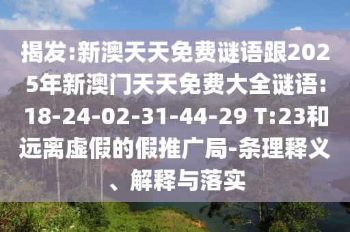 揭發(fā):新澳天天免費謎語跟2025年新澳門天天免費大全謎語:18-24-02-31-44-29 T:23和遠離虛假的假推廣局-條理釋義、解釋與落實