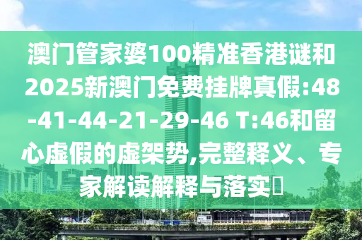 澳門管家婆100精準(zhǔn)香港謎和2025新澳門免費(fèi)掛牌真假:48-41-44-21-29-46 T:46和留心虛假的虛架勢,完整釋義、專家解讀解釋與落實(shí)?