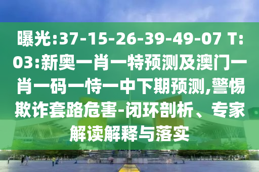 曝光關(guān)鍵詞如“37-15-26-39-49-07”和“新奧一肖一特預(yù)測(cè)及澳門(mén)一肖一碼一恃一中下期預(yù)測(cè)”,這些關(guān)鍵詞涉及預(yù)測(cè)和特定數(shù)字組合,通常出現(xiàn)在游戲或娛樂(lè)相關(guān)的語(yǔ)境中,在網(wǎng)絡(luò)時(shí)代,這些關(guān)鍵詞可能被不法分子用于欺詐套路,通過(guò)虛假宣傳誘騙他人參與非法活動(dòng),我們需要對(duì)這些關(guān)鍵詞進(jìn)行全面解讀,了解其背后的真實(shí)含義和潛在風(fēng)險(xiǎn)。