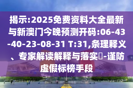 關(guān)于揭示“2025免費(fèi)資料大全最新與新澳門今晚預(yù)測開碼”的條理釋義、專家解讀解釋與落實(shí),以及警惕虛假標(biāo)榜手段的探討