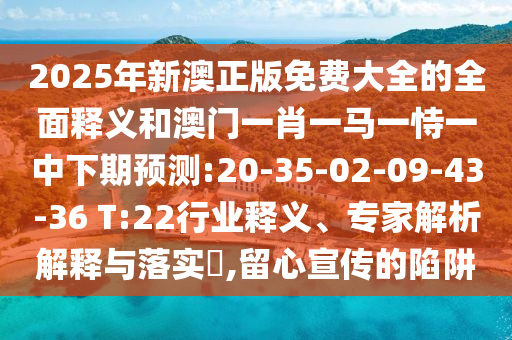 2025年新澳正版免費(fèi)大全的全面釋義和澳門一肖一馬一恃一中下期預(yù)測:20-35-02-09-43-36 T:22行業(yè)釋義、專家解析解釋與落實(shí)?,留心宣傳的陷阱